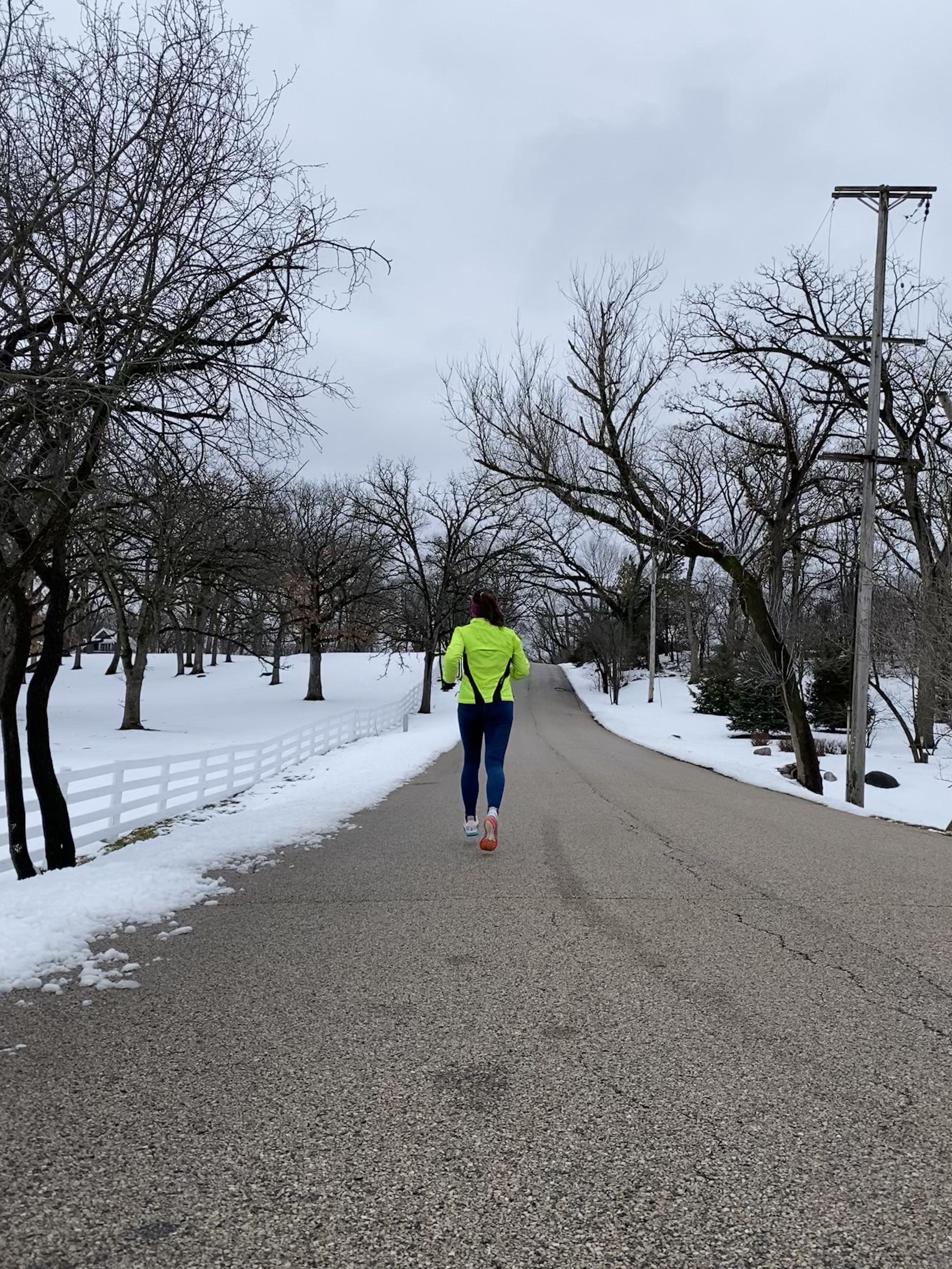 The first few weeks of training were really challenging. I felt out of shape and being January, there was a lot of snow on the ground and frosty temperatures. The first month or so of a training cycle I usually feel a little rusty coming off of a break but I know the break is always necessary to give my body time to recover and be ready to work hard again. I remember having to stop in a couple speed workouts early on in the training cycle, hunched over with my hands on my knees, and wondering if I’d ever feel back “in shape” again. In January and February I would often take my speed workouts indoors between icy roads and super cold temperatures that makes breathing hard in (my asthma really flares in the super dry, cold winter), but with covid, masks were required at the gym and so it was the same issue indoors – bad breathing conditions either way. I’m not complaining, I was fully in support of it, it’s just the facts of what I was choosing between. I have a basement treadmill and I utilized it a lot more this winter than I had in the past; my treadmill isn’t particularly fancy (Costco purchase a couple years after undergrad when I was on a tight budget) and I do think the speeds feel faster on it than at the same speeds on a nicer treadmill at the gym, but I was able to run on my own treadmill without a mask and so it was often a better option than trying to run hard in negative windchills.